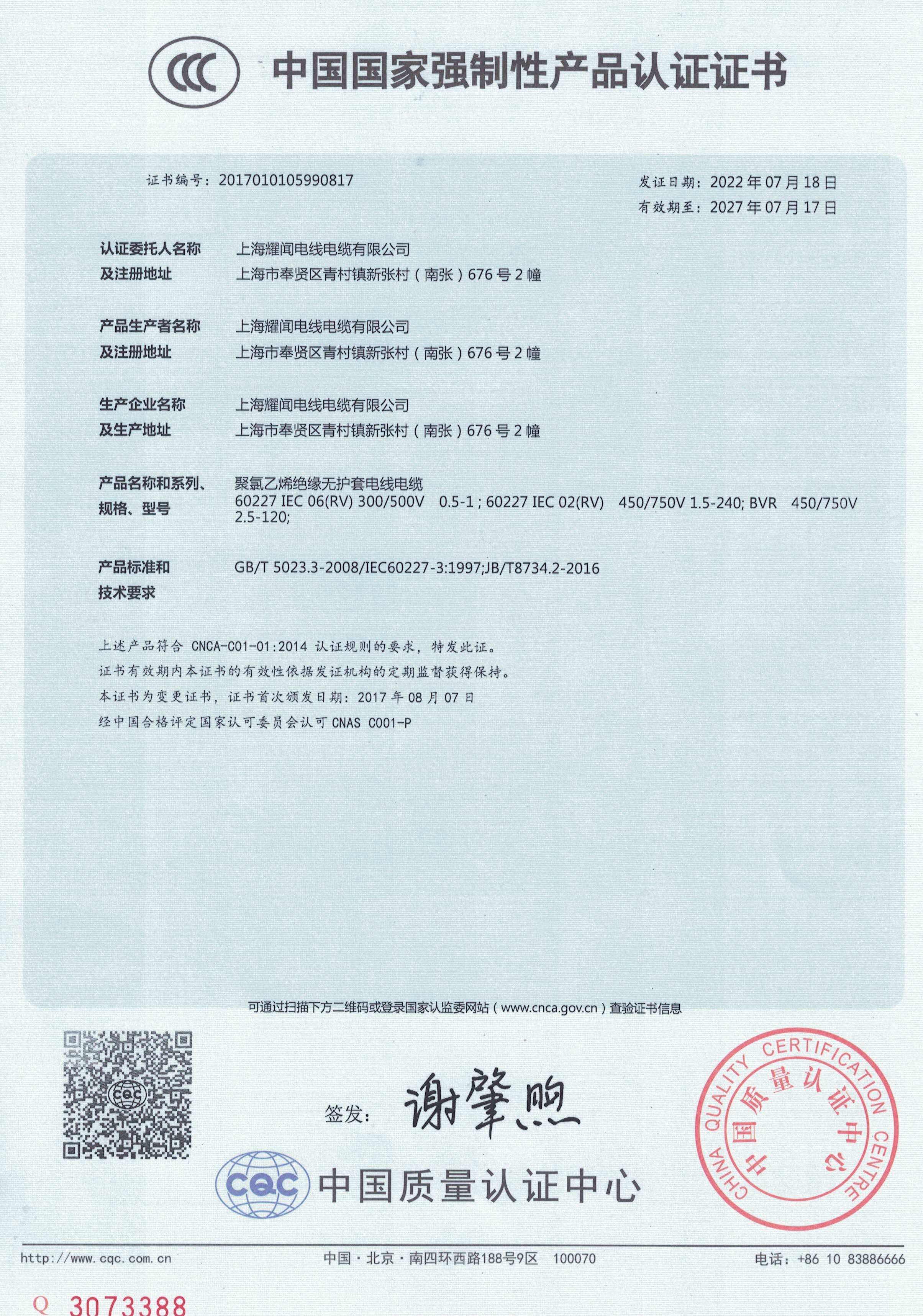 上海耀聞電線電纜有限公司